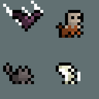 A charming asset pack with lots of super low-res creatures for top-down view fantasy games. These creatures have been created to work with 8x8px tilesets.